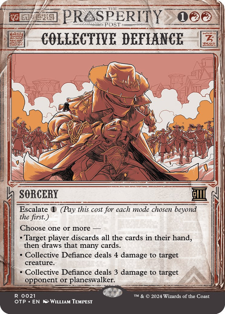 • Collective Defiance deals 3 damage to target opponent or planeswalker.