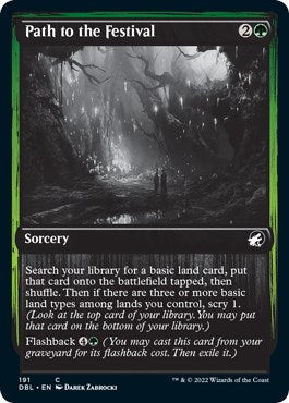 Rules Text Contains: Search your library for a basic land card, put that card onto the battlefield tapped, then shuffle. Then if there are three or more basic land types among lands you control, scry 1. (Look at the top card of your library. You may put that card on the bottom of your library.)